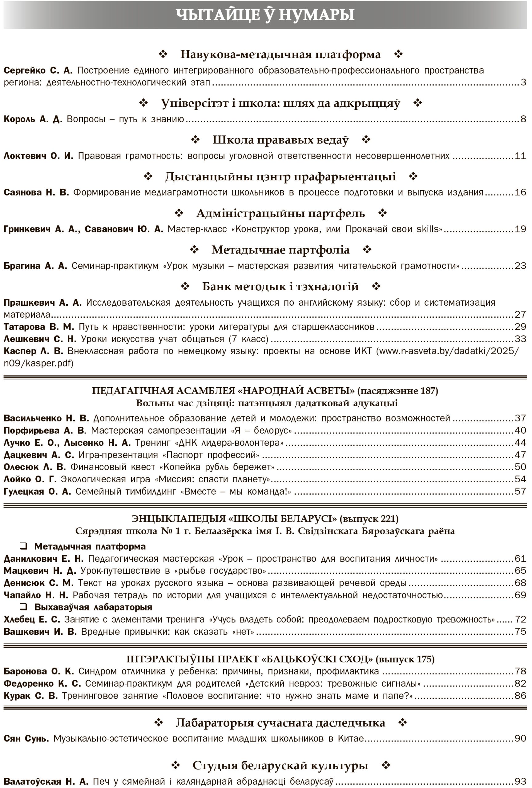 Змест да №9 за 2025 г.